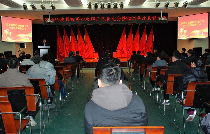 2022年1 月28日,河冶科技四屆四次職工代表大會暨2021年度表彰大會在多功能廳隆重召開。公司黨委書記、董事長楊文義,總經(jīng)理米永旺及黨委委員、助理以上領(lǐng)導、全體中層干部、職工代表、采購營銷人員、部門骨干、列席代表等出席了會議,安泰科技總經(jīng)理畢林生、紀委書記劉建欣通過視頻全程參加會議。