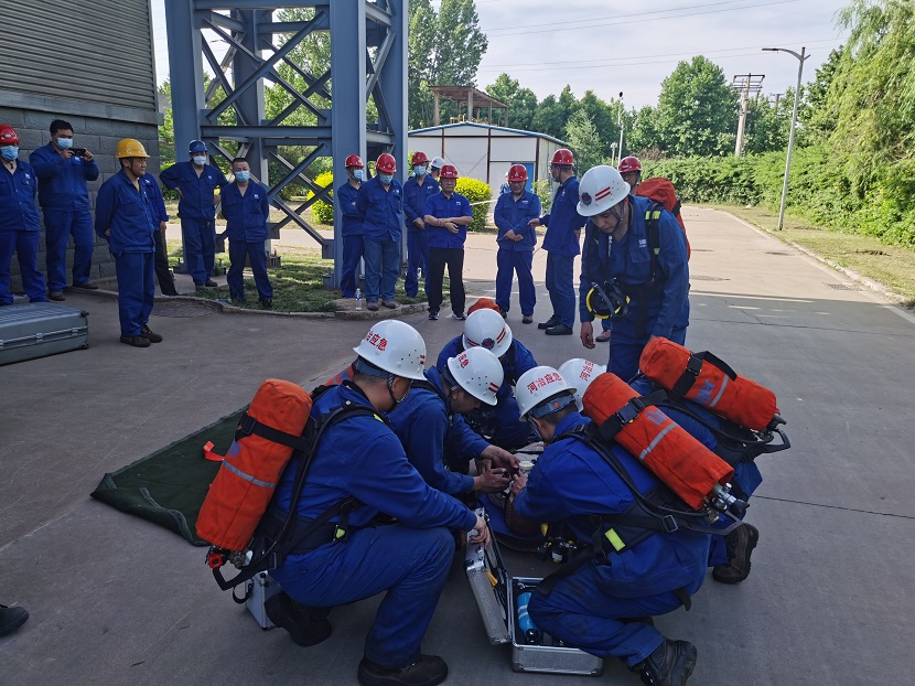 本次演練在公司安全總監侯國棟的一聲令下,演練拉開序幕,由公司應急救援隊組成的現場作業組、應急救援組、疏導警戒組、醫療救護組等4組演練人員開展救援工作,相繼展示了事故發生后的事故報告、現場秩序維護、氣體檢測、救援三腳架搭設、安全防護裝備佩戴、通風設備使用、人員救護等應急處置全過程。